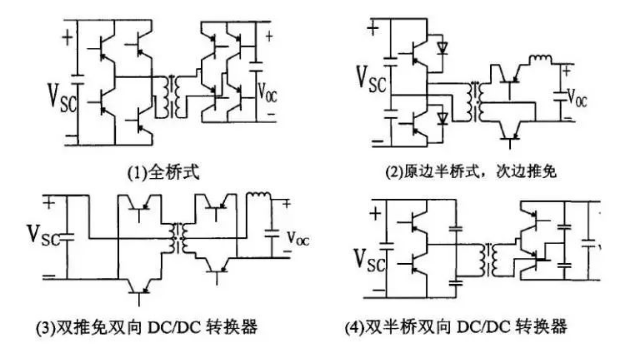 DC/DC 變換器,作為電動汽動力系統(tǒng)中很重要的一部分,它的一類重要功用是為動力轉向系統(tǒng),空調以及其他輔助設備提供所需的電力。另一類,是出現(xiàn)在復合電源系統(tǒng)中,與超級電容串聯(lián),起到調節(jié)電源輸出,穩(wěn)定母線電壓的作用。